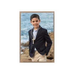 Tarjetón de comunión. Tamaño 30x15 con hendido 15x15 cm. Portada grabada en láser, interiores para pegar foto. Papel kraft de 300 gramos. Se sirven en paquetes de 12 unidades.