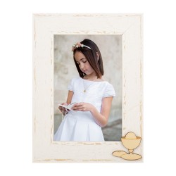 Marco de madera. Con aplique de comunión. Para foto 9x13 (vertical), 10x15 (vertical), 13x13 y 10x20 (horizontal). En caso de pedir el marco grababado se realizará de la siguiente manera: Alonso 29-Abril-2019 si lo desea de otra manera especifiquelo en observaciones.