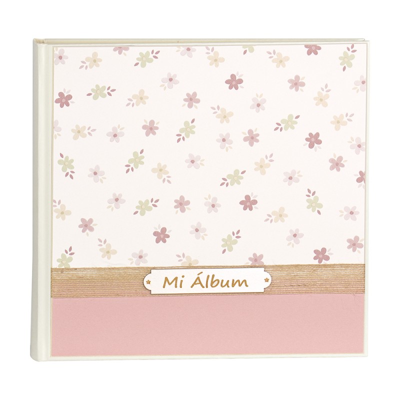 • Tapa de material con cinta de yute y chapita grabada "Mi Álbum".