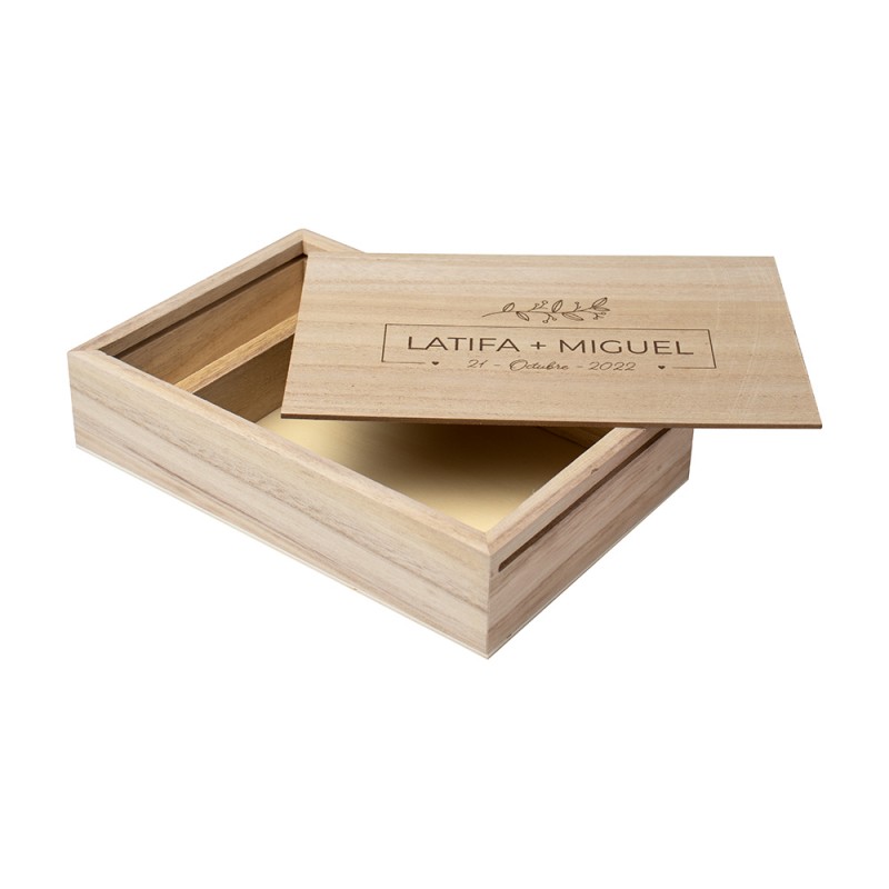 Caja de madera grabado láser para usb (no incluido) con tapa corredera.
