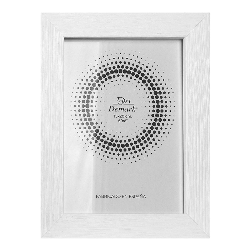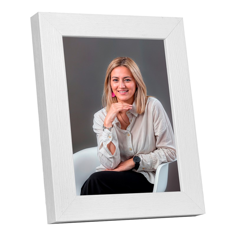 Marco de pared con foto y adhesivo color blanco.