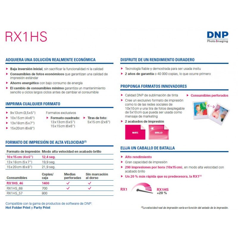 Capaz de imprimir una foto 10x15 en tan sólo 12,4 segundos, la más rápida de las impresoras DNP.