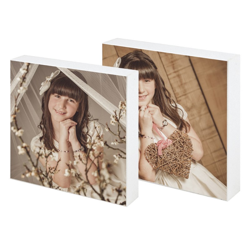 Taco de madera de 22MM, con dos fotos personalizadas impresas en papel silk.