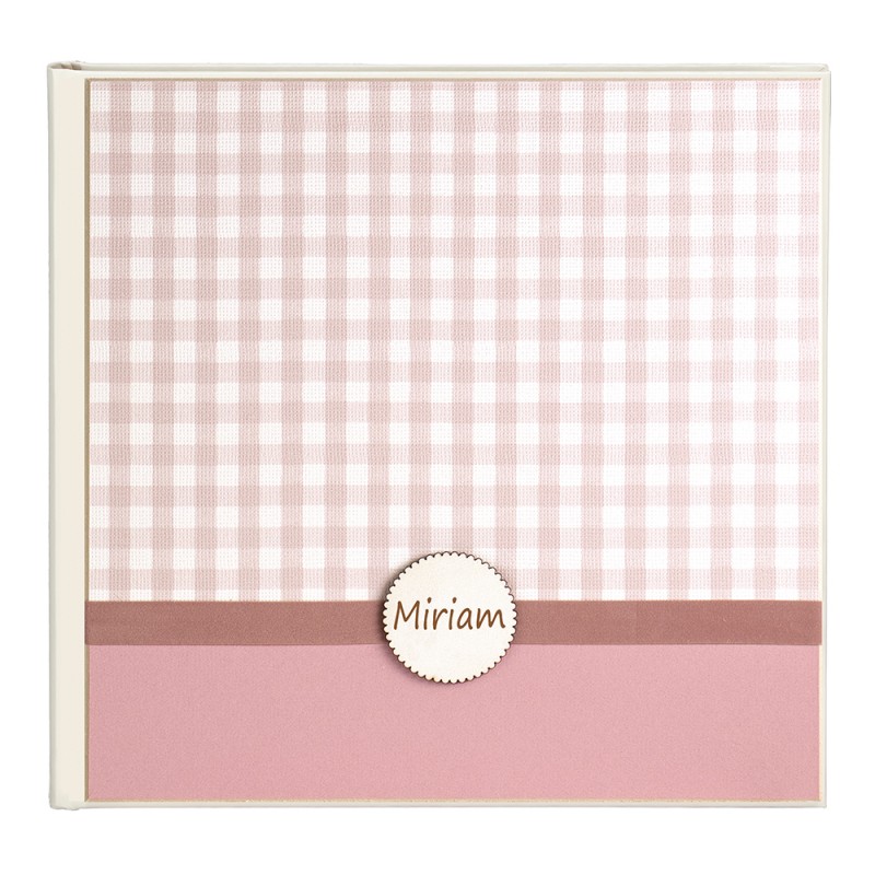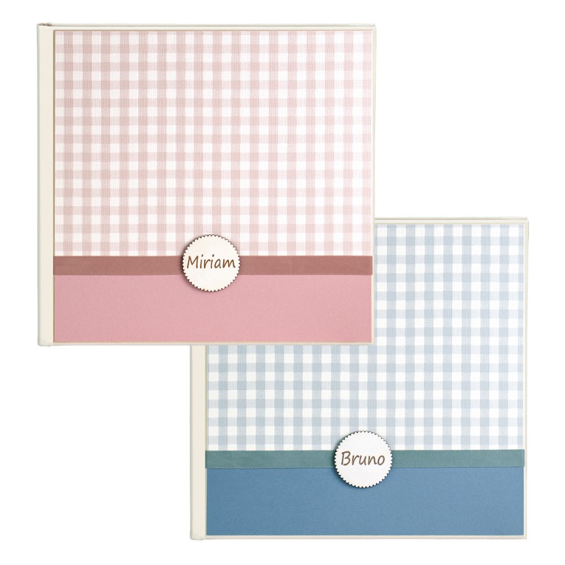 • Tapa de material con cinta de terciopelo y aplique grabado personalizado.
