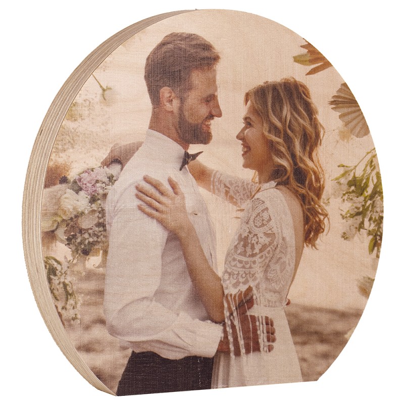 Figura de madera de 19MM en forma de círculo, método de impresión directa mediante tintas UV.