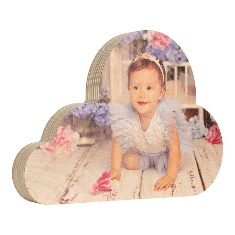 Figura de madera de 19MM en forma de nube, método de impresión directa mediante tintas UV.